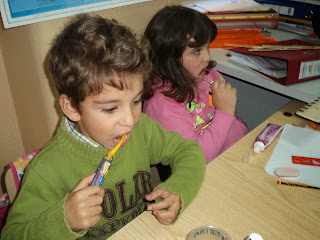 Neste dia vieram à nossa escola uma Higienista Oral e uma Enfermeira, explicar porque devemos lavar muito bem os nossos dentinhos.