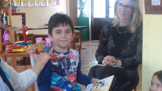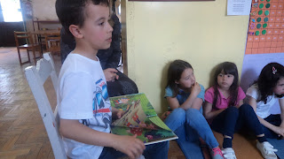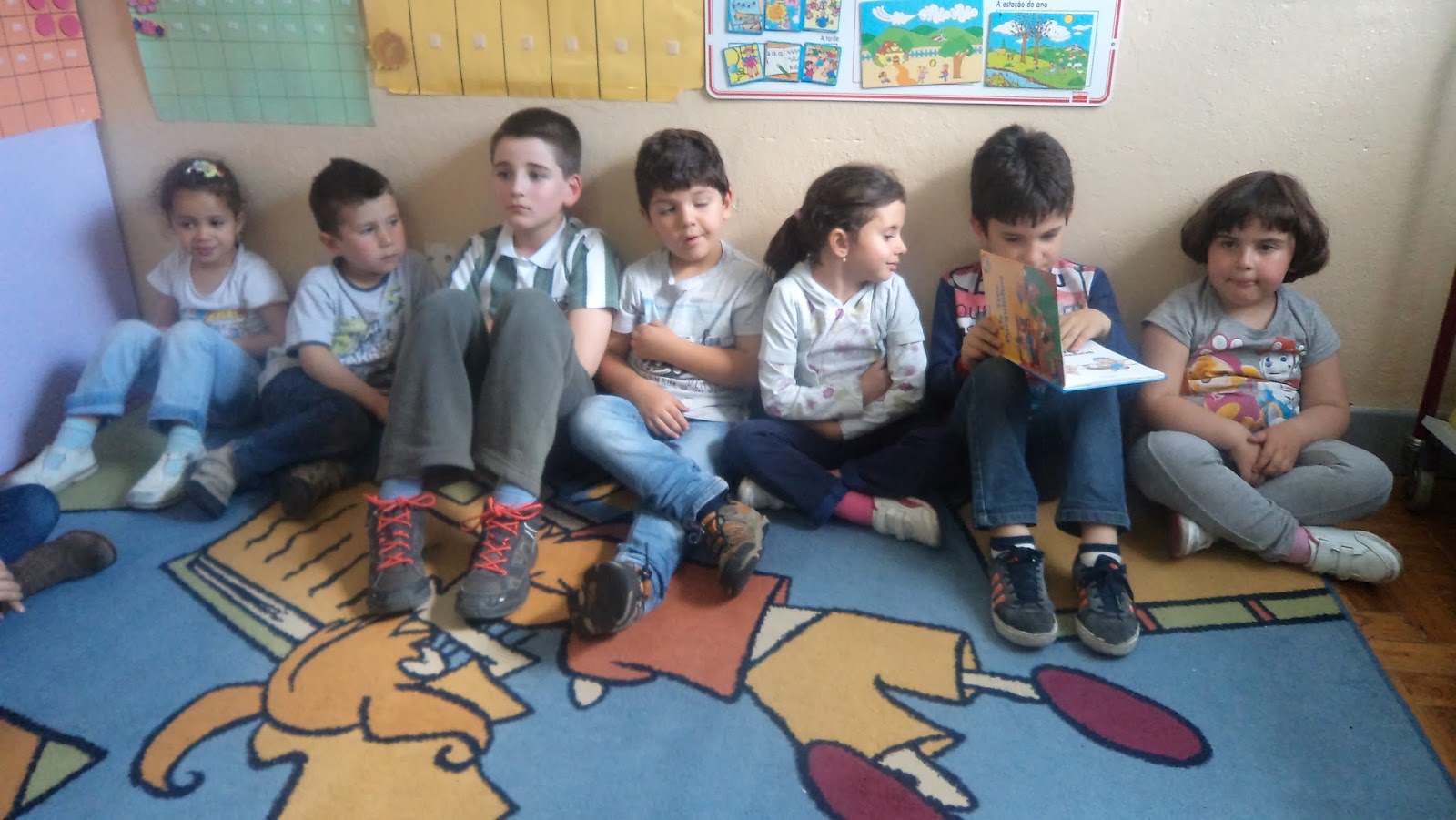 Os meninos do 1º ano já sabem ler: o Afonso Alexandre e o André Oliveira vieram ler duas histórias para os meninos do pré-escolar. Gostámos muito e ficámos orgulhosos deles!